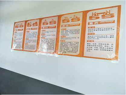 活動首先由各部門、車間利用班前、后會分批開展5S現(xiàn)場管理知識集體學習,同時通過微信公眾平臺、宣傳欄、條幅等形式進一步宣傳推廣現(xiàn)場管理知識。隨后公司組織各車間負責人進行了現(xiàn)場檢查,針對查出的隱患將根據(jù)生產實際情況制定整改計劃并分階段進行整改。通過理論與實踐相結合的方式,明確了現(xiàn)場管理工作的核心、目的、職責與范圍,使員工對5S現(xiàn)場管理有了更深入的了解。
