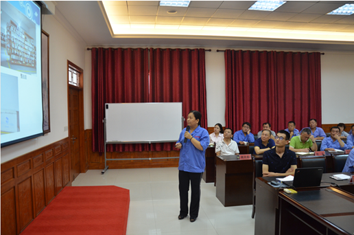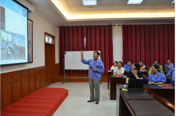 集團人力與運營部張威經(jīng)理以PPT形式通報集團5S現(xiàn)場改善活動進度