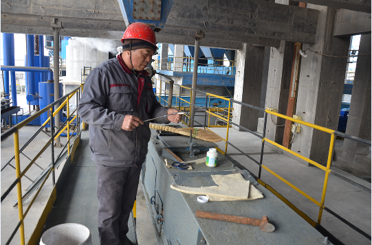 維修主任王克強(qiáng)帶領(lǐng)著員工調(diào)整旋窯托輥