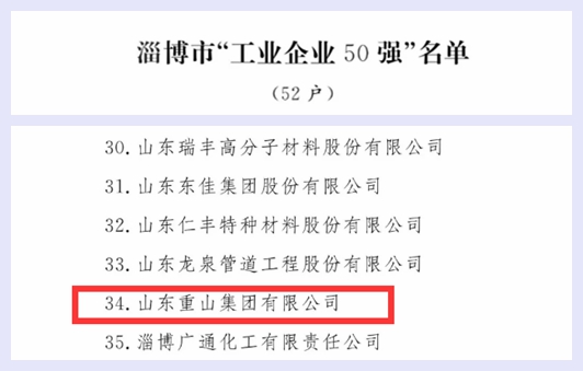 【喜訊】山東重山集團(tuán)再次榮膺淄博市“工業(yè)企業(yè)50強”