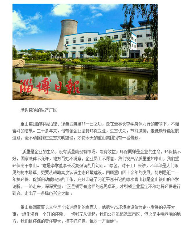 生態(tài)高顏值 發(fā)展高素質(zhì) —淄博新聞媒體刊發(fā)重山集團(tuán)打造生態(tài)花園式工廠實踐紀(jì)實