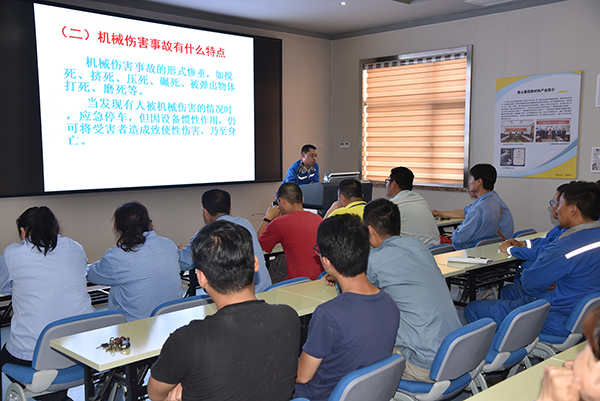 6月12日,集團(tuán)運(yùn)營(yíng)中心組織第二季安全輪訓(xùn)活動(dòng),來(lái)自魯中水泥、重山思沃瑞基層員工40余人參加。思沃瑞安環(huán)部經(jīng)理邊延強(qiáng)以PPT形式詳細(xì)講解了機(jī)械傷害的概念、特點(diǎn)、發(fā)生原因、危險(xiǎn)性分析及預(yù)防措施等五方面內(nèi)容,并對(duì)企業(yè)實(shí)際的機(jī)械傷害事故案例做重點(diǎn)分析。參訓(xùn)人員觀看了相關(guān)安全教育視頻,使參訓(xùn)員工切實(shí)感受到安全操作的重要性,杜絕僥幸心理,提高安全意識(shí),為提升員工安全素養(yǎng)和車間安全生產(chǎn)不斷夯實(shí)基礎(chǔ)。