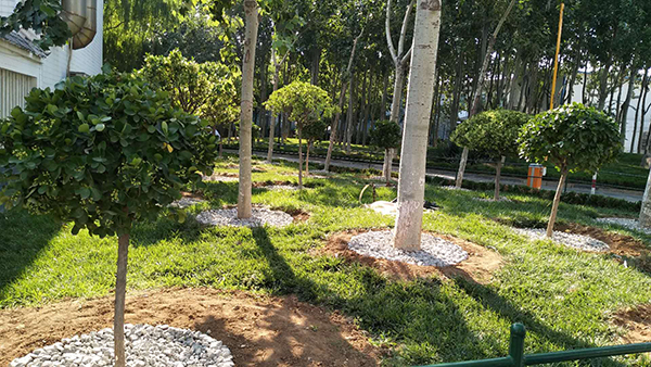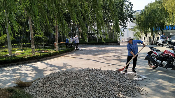 隨著高溫酷暑季節(jié)到來(lái),為保持綠化區(qū)樹(shù)穴澆灌水不流失,6月23日,物資部經(jīng)理張娟聯(lián)系供料車間運(yùn)來(lái)石子和土,物資部眾姐妹紛紛拿起工具,頂著烈日行動(dòng)起來(lái),大家分工合作,卸車、運(yùn)輸,為每個(gè)樹(shù)穴填土、鋪石子,歷經(jīng)一天的時(shí)間,為綠化帶的樹(shù)木穿上了一層美麗的嫁衣。