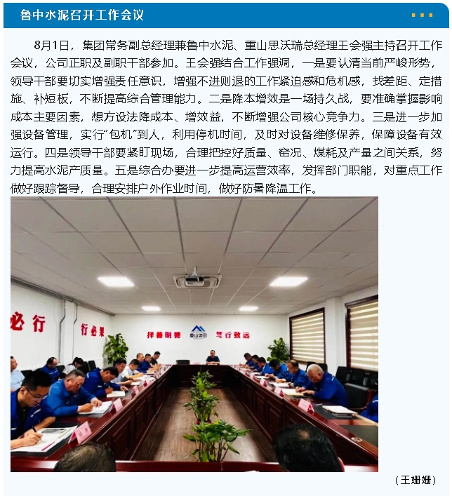 魯中水泥召開各級各類工作會議,深入推進提質(zhì)增效