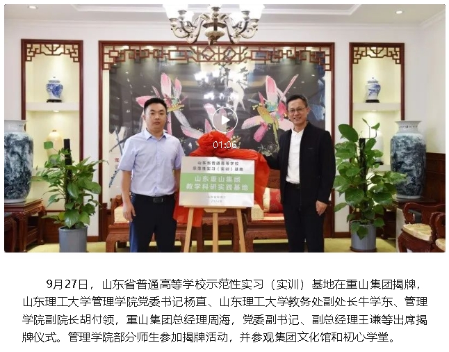 【頭條】山東省普通高等學(xué)校示范性實(shí)習(xí)(實(shí)訓(xùn))基地在重山集團(tuán)揭牌