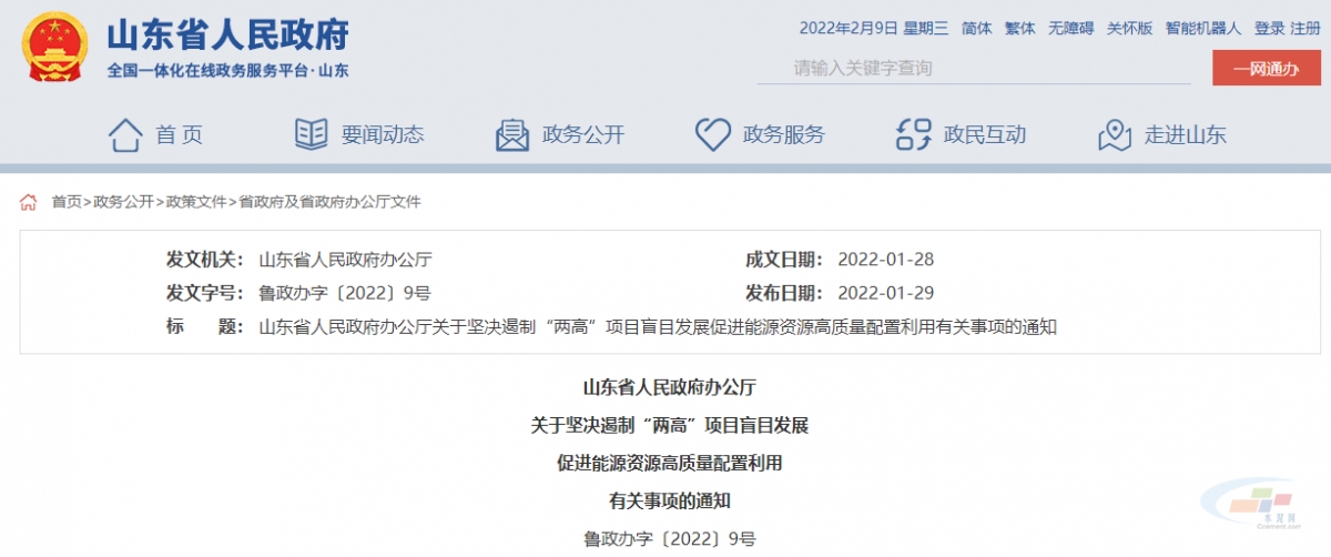 【轉(zhuǎn)載】山東?。簣?jiān)決遏制“兩高”項(xiàng)目盲目發(fā)展 水泥行業(yè)新上項(xiàng)目必須落實(shí)能源消費(fèi)減量替代