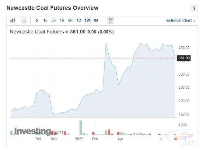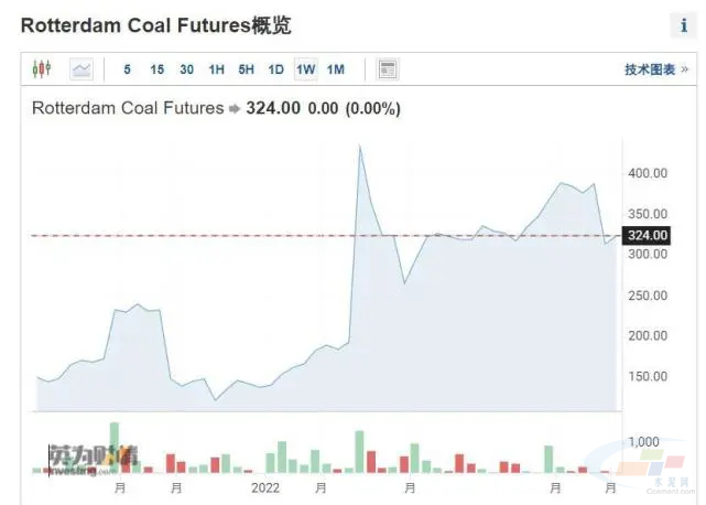 歐洲煤炭價格基準(zhǔn)之一、鹿特丹煤炭期貨價格走勢 圖片來源:英為財情