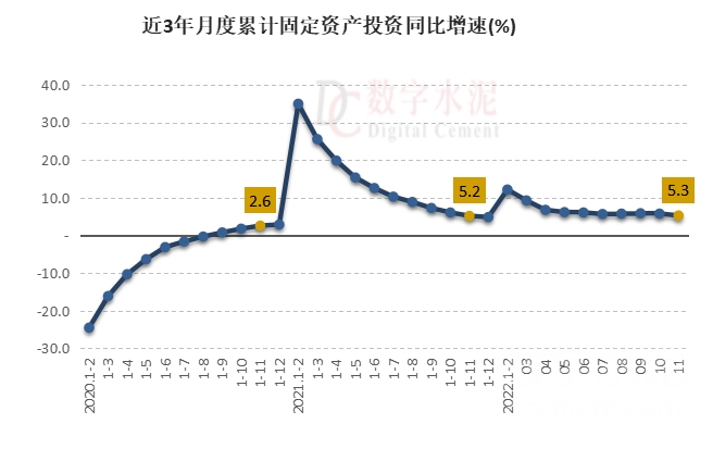 2022年1-11月,全國固定資產(chǎn)投資(不含農(nóng)戶)52萬億元,同比增長5.3%,增速較1-10月下降0.5個百分點,高于去年同期0.1個百分點。從單月投資來看,11月份固定資產(chǎn)投資(不含農(nóng)戶)環(huán)比下降0.87%。
