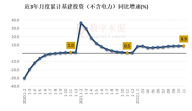 1-11月,全國基礎(chǔ)設(shè)施投資(不含電力)同比增長8.9%,增速較1-10月上升0.2個百分點,高于去年同期8.4個百分點。其中,水利管理業(yè)投資同比增長14.1%,道路運(yùn)輸業(yè)投資增長2.3%,鐵路運(yùn)輸業(yè)投資增長2.1%。