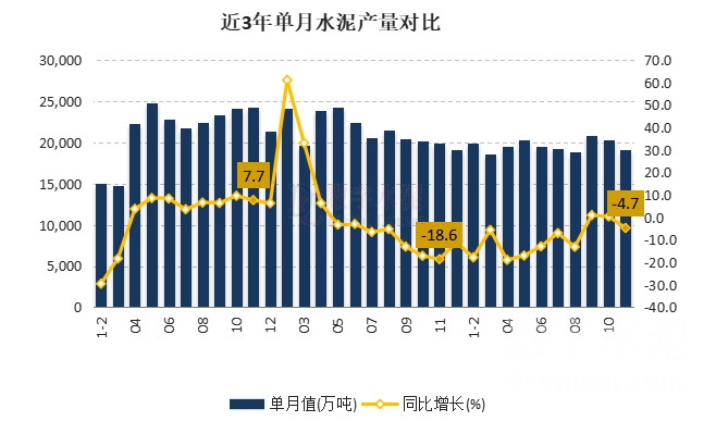 【轉(zhuǎn)載】需求持續(xù)減弱,1-11月份全國水泥產(chǎn)量同比降幅略有收窄