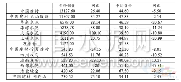 水泥大數(shù)據(jù):2022年部分上市公司骨料價(jià)格及銷量情況(單位:萬噸,元/噸,%)