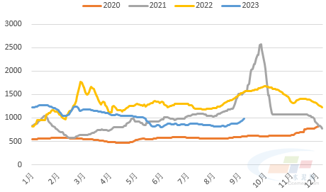 9月本該用煤淡季,然而煤價卻出現(xiàn)“淡季偏強(qiáng)”特征。究其原因,一方面煤炭產(chǎn)區(qū)事故頻發(fā),安檢力度加大,不少煤礦暫時停產(chǎn),導(dǎo)致供應(yīng)階段性偏緊;另一方面,國際原油價格持續(xù)上漲,帶動國內(nèi)化工品利潤修復(fù),化工行業(yè)開工率提升,化工用煤采購增加。多重因素交織下,9月煤炭價格震蕩上漲,目前煤價在990元/噸左右,較月初上漲145元/噸,漲幅高達(dá)17%,水泥企業(yè)生產(chǎn)成本壓力加大。部分企業(yè)反饋,即使當(dāng)前水泥價格上調(diào)20元/噸,也難以抵消煤價上漲帶來的成本增加壓力,本輪水泥價格上漲的主要驅(qū)動力在于煤價上漲。