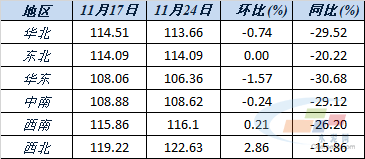 分區(qū)域看,本周六大區(qū)域漲跌互現(xiàn)。西北地區(qū)供應(yīng)受限,水泥價格走高2.86%;西南地區(qū)錯峰停窯,水泥價格微漲0.21%;華東地區(qū)需求走弱,水泥價格下行1.57%;華北地區(qū)出貨下降,水泥價格較上周下跌0.74%;中南地區(qū)銷量一般,水泥價格下行0.24%;東北地區(qū)進(jìn)入冬休,水泥價格維穩(wěn)。