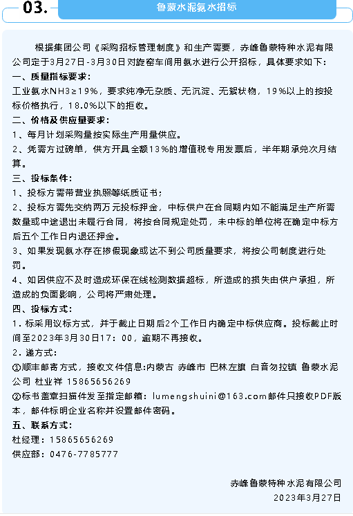 【招標(biāo)公告】重山集團、魯中水泥、魯蒙水泥
