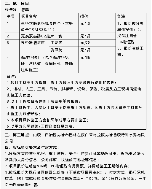 【招標(biāo)公告】魯中水泥煙煤、螢澤礦業(yè)物料運輸、魯蒙水泥旋窯檢修項目招標(biāo)
