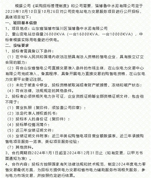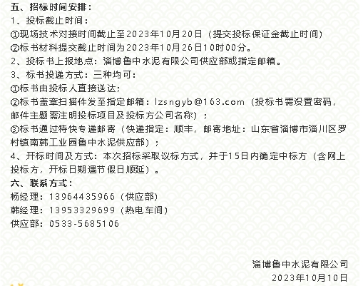【招標(biāo)公告】魯中水泥