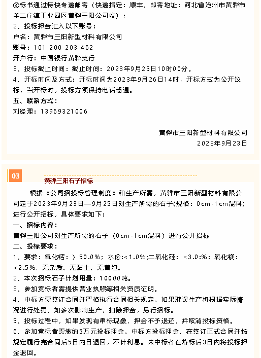 【招標(biāo)公告】黃驊三陽礦粉運輸、熟料運輸、石子招標(biāo)
