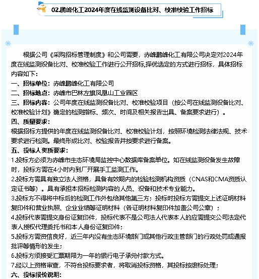 【招標(biāo)公告】鵬峰化工