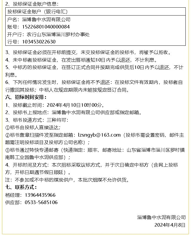 【招標(biāo)公告】魯中水泥