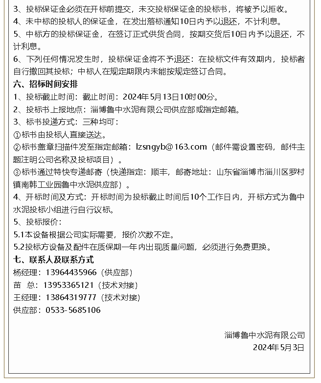 【招標(biāo)公告】魯中水泥