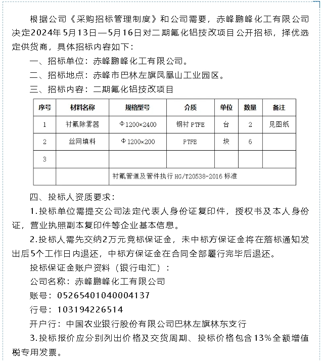 【招標(biāo)公告】鵬峰化工