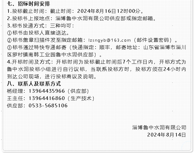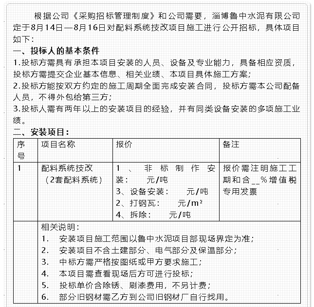 【招標(biāo)公告】魯中水泥