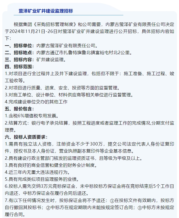 【招標(biāo)公告】螢澤礦業(yè)、魯中水泥
