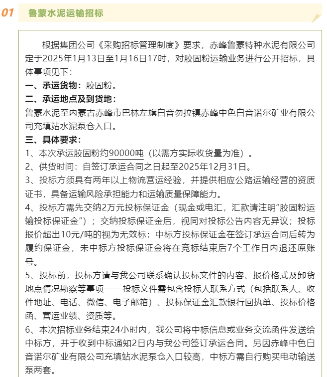 【招標公告】魯蒙水泥、重山思沃瑞