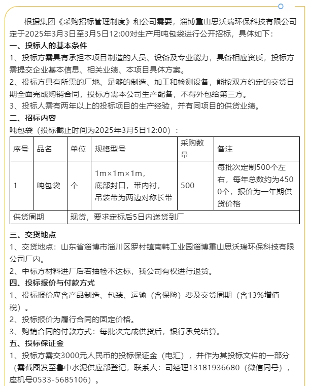 【招標(biāo)公告】重山思沃瑞