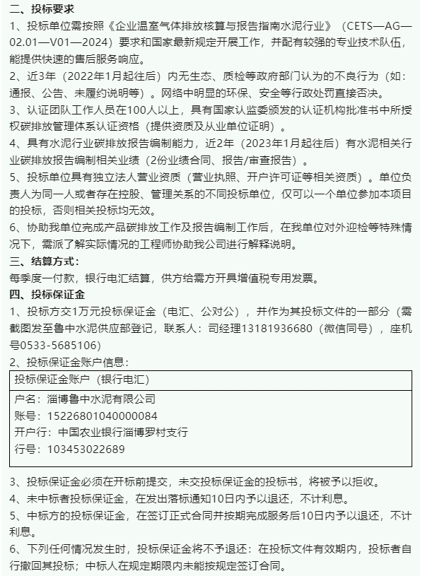 【招標(biāo)公告】魯中水泥、重山光電