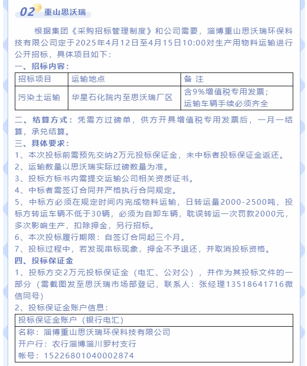 【招標(biāo)公告】魯中水泥、重山思沃瑞