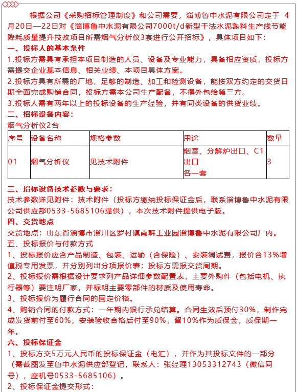 【招標(biāo)公告】魯中水泥