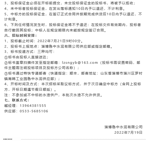 【招標(biāo)公告】魯中水泥