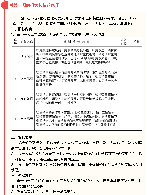 【招標(biāo)公告】黃驊三陽、魯中水泥