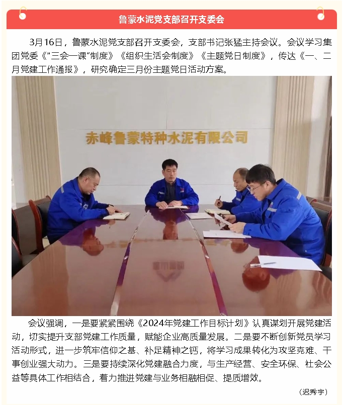 【黨建】魯蒙水泥黨支部、黃驊三陽黨支部召開支委會(huì)