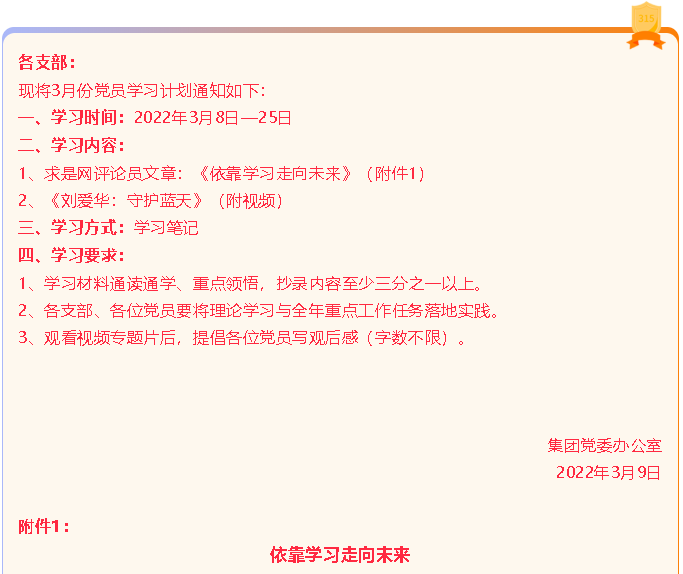 【通知】?集團(tuán)黨委3月份學(xué)習(xí)通知