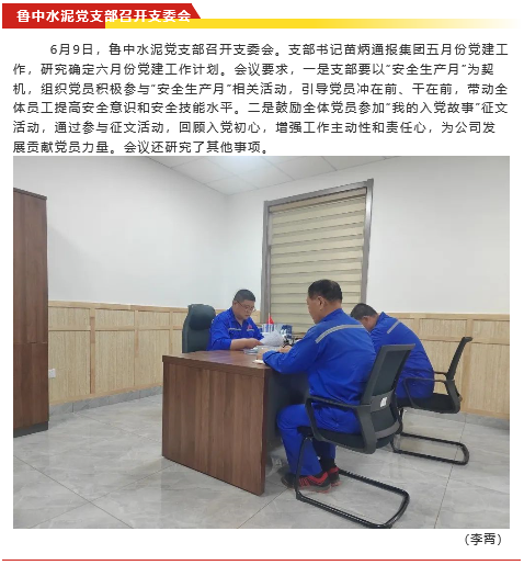 【黨建】集團(tuán)機(jī)關(guān)黨支部、魯中水泥黨支部召開支委會(huì)