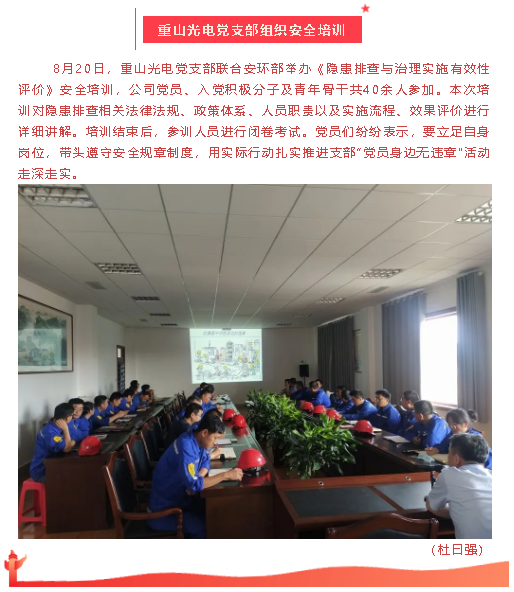 【黨建】集團機關(guān)黨支部召開發(fā)展黨員推選會議、重山光電黨支部組織安全培訓