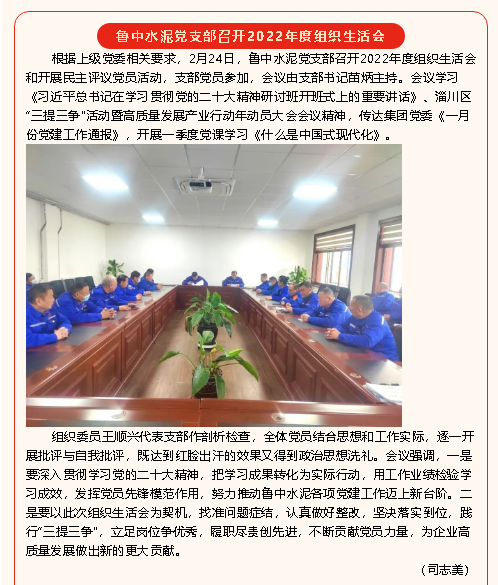 【黨建】魯中水泥黨支部召開2022年度組織生活會(huì)、魯蒙水泥黨支部開展主題黨日活動(dòng)