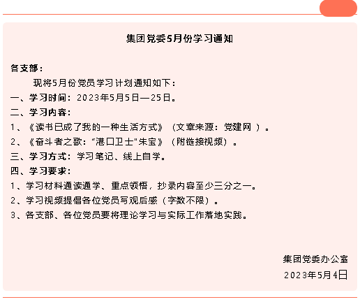 【通知】集團黨委5月份學習通知