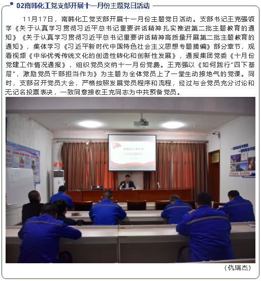 【黨建】集團(tuán)機(jī)關(guān)黨支部召開(kāi)支委擴(kuò)大會(huì)、南韓化工黨支部開(kāi)展十一月份主題黨日活動(dòng)