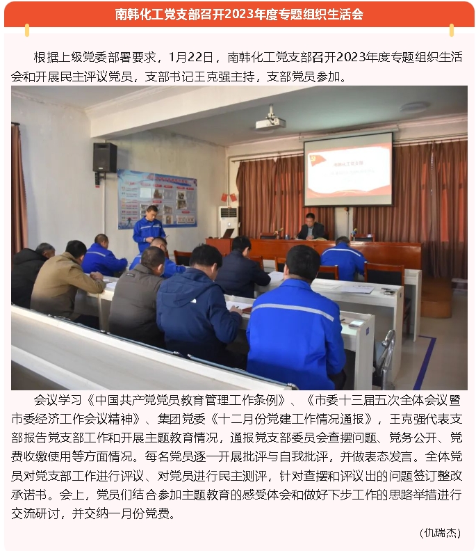 【黨建】集團機關黨支部、南韓化工黨支部分別召開2023年度專題組織生活會
