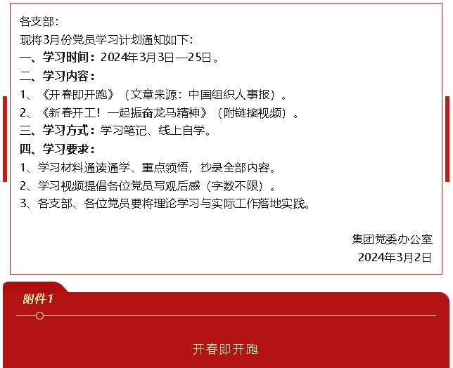 【通知】集團(tuán)黨委3月份學(xué)習(xí)通知