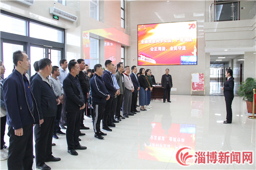 隨后,黨員們集體瞻仰了淄川烈士陵園、淄川革命歷史紀念館,聽取淄川革命歷史等相關(guān)情況介紹。在淄川革命歷史紀念館內(nèi),陳列著抗日戰(zhàn)爭、解放戰(zhàn)爭等各個時期無數(shù)革命英烈浴血奮戰(zhàn)的英雄事跡。一件件珍貴的史料、一個個動人的故事、一幕幕感人的畫面,給黨員們上了一堂生動的黨課。在黨性教育中心,黨員們集體觀看了紅色電影《建黨偉業(yè)》,回顧中國共產(chǎn)黨成立的艱難歷程,重溫光輝黨史。觀影結(jié)束后,黨員們齊聲高唱了《沒有共產(chǎn)黨就沒有新中國》。