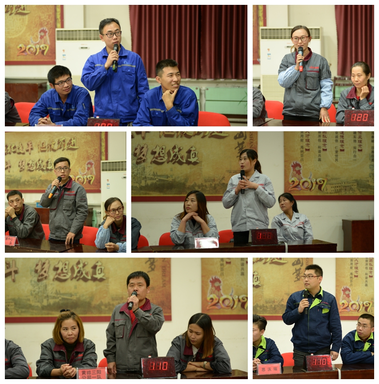 本次競賽分預(yù)賽和決賽兩個階段進(jìn)行,共有個人必答題、集體必答題、搶答題和觀眾互動答題四個環(huán)節(jié)。選手們經(jīng)過賽前周密的準(zhǔn)備,在必答題環(huán)節(jié)選手們沉穩(wěn)應(yīng)對、對答如流,贏得了觀眾熱烈的掌聲。在激烈的搶答題環(huán)節(jié)中,選手們思維敏捷,搶答迅速,各隊比分緊咬不放,優(yōu)勢方幾度改變輪轉(zhuǎn)。通過三場精彩的預(yù)賽,魯中水泥物資部代表隊、動力車間代表隊、熱電廠代表隊、發(fā)展中心一隊、黃驊三陽公司一隊和二隊共6只隊伍脫穎而出,進(jìn)入決賽。