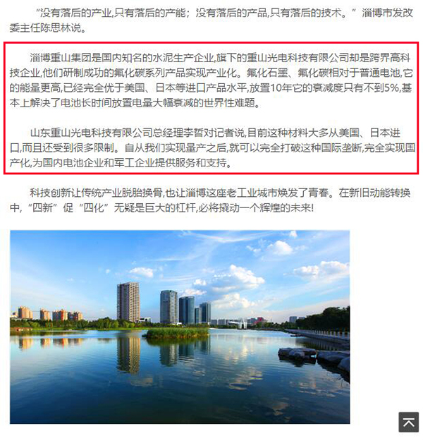 5月14日,淄博日報(bào)公眾平臺《掌中淄博》在《眾志成城開新篇——再造淄博新動能》系列報(bào)道中推送了重山光電的創(chuàng)新發(fā)展。重山光電作為淄博市新動能轉(zhuǎn)換的企業(yè)代表和重大項(xiàng)目,成功研制出氟化碳系列產(chǎn)品并實(shí)現(xiàn)產(chǎn)業(yè)化。打破了國際壟斷市場,為推進(jìn)淄博市企業(yè)新舊動能轉(zhuǎn)換提供了行業(yè)實(shí)踐。