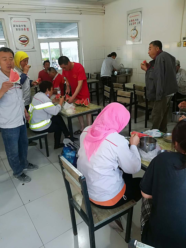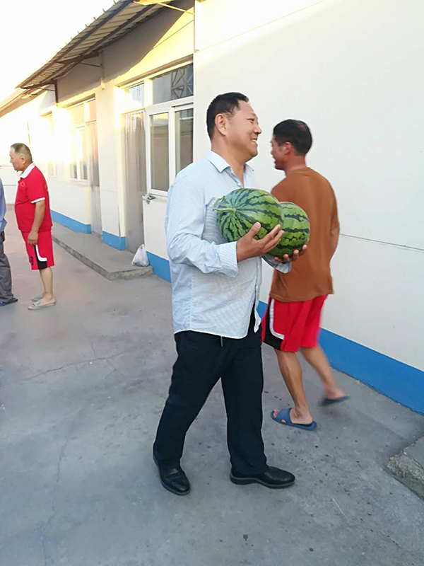6月3日,黃驊三陽客戶陳亮到公司辦理業(yè)務時,看到總經理王軍林帶領職工已連續(xù)兩天在搶修磨機,面對磨房的高溫環(huán)境,王軍林總經理和職工們克服種種困難,揮汗如雨,在高溫環(huán)境中搶進度,搶時間這奮斗精神深深地感染著陳亮經理,并于下午為三陽的職工們送來了西瓜、方便面、礦泉水等物資。重山員工用實際行動踐行致良知,同時,致良知思想也感染并深入到客戶心中,對陳亮經理的這種善心義舉,王軍林總經理和三陽員工表達了由衷的感謝。