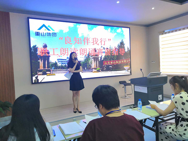 為提高各位參賽選手的能力,保證“良知伴我行”職工朗讀朗誦比賽取得良好的效果。6月24日,集團辦公室邀請區(qū)電視臺文體部主任李麗、主持人王寧、攝像記者車俊艷、張志凌霄四位專業(yè)老師做賽前指導。四位老師針對每位參賽選手的表現(xiàn)和稿件內容,從語調、節(jié)奏、走臺、故事講述、排比句等朗讀技巧進行了現(xiàn)場示范。參賽選手經過老師的專業(yè)指導,掌握了更好的朗讀朗誦技巧,對正式比賽充滿了信心。