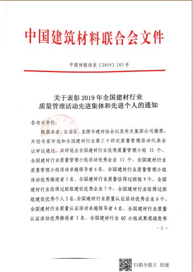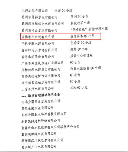 魯中水泥榮獲全國(guó)建材行業(yè)先進(jìn)集體稱號(hào)