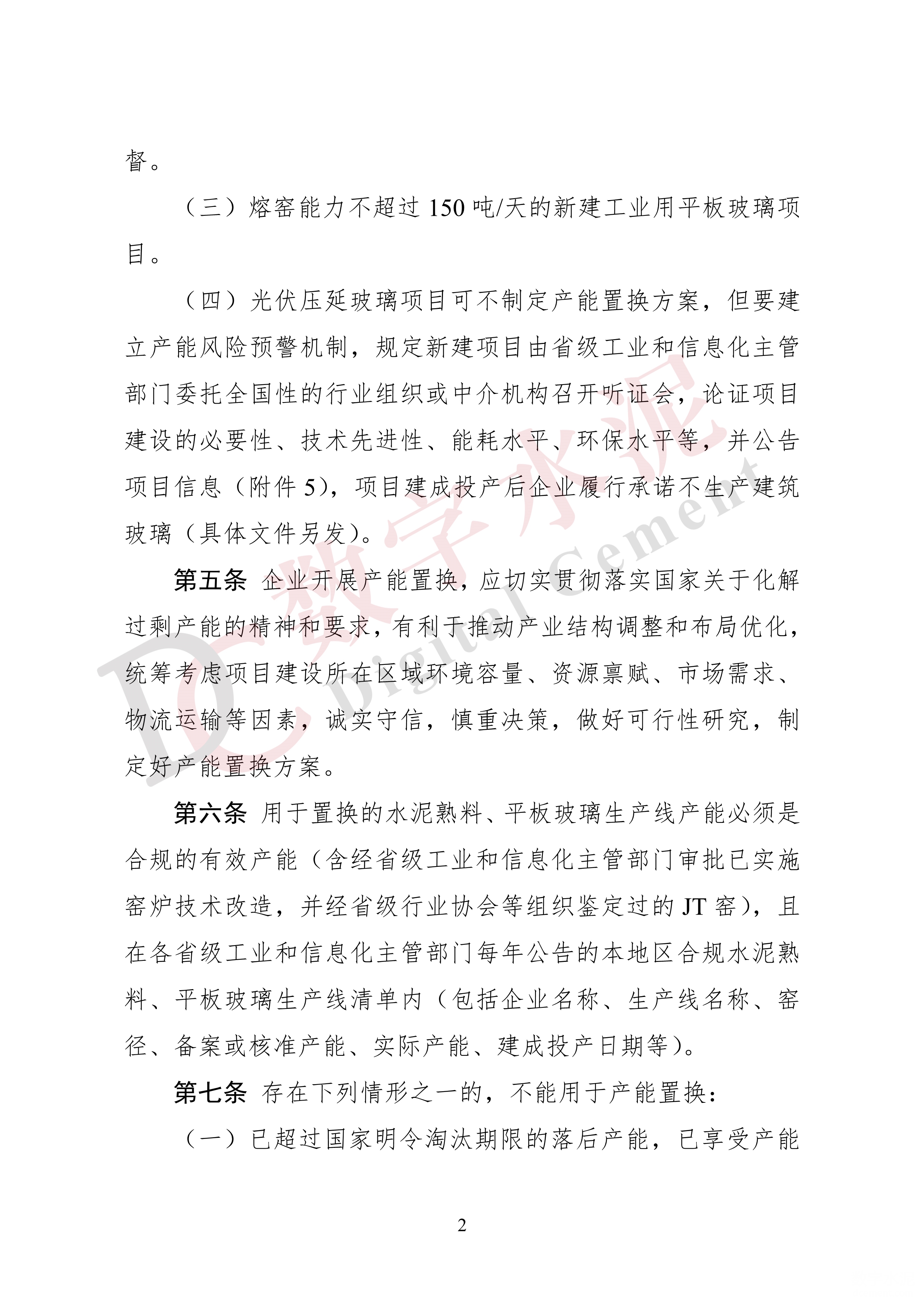 用于置換的水泥熟料、平板玻璃生產(chǎn)線產(chǎn)能必須是合規(guī)的有效產(chǎn)能(含經(jīng)省級工業(yè)和信息化主管部門審批已實(shí)施窯爐技術(shù)改造,并經(jīng)省級行業(yè)協(xié)會(huì)等組織鑒定過的JT窯),且各地省級工業(yè)和信息化主管部門需在每年3月31日前更新并公告本地區(qū)截止上年底的水泥熟料、平板玻璃生產(chǎn)線清單(包括企業(yè)名稱、生產(chǎn)線名稱、窯徑、備案或核準(zhǔn)產(chǎn)能、實(shí)際產(chǎn)能、建成投產(chǎn)日期等),指標(biāo)須在清單內(nèi)。同時(shí),存在辦法第七條規(guī)定的情形之一的,不能用于產(chǎn)能置換: